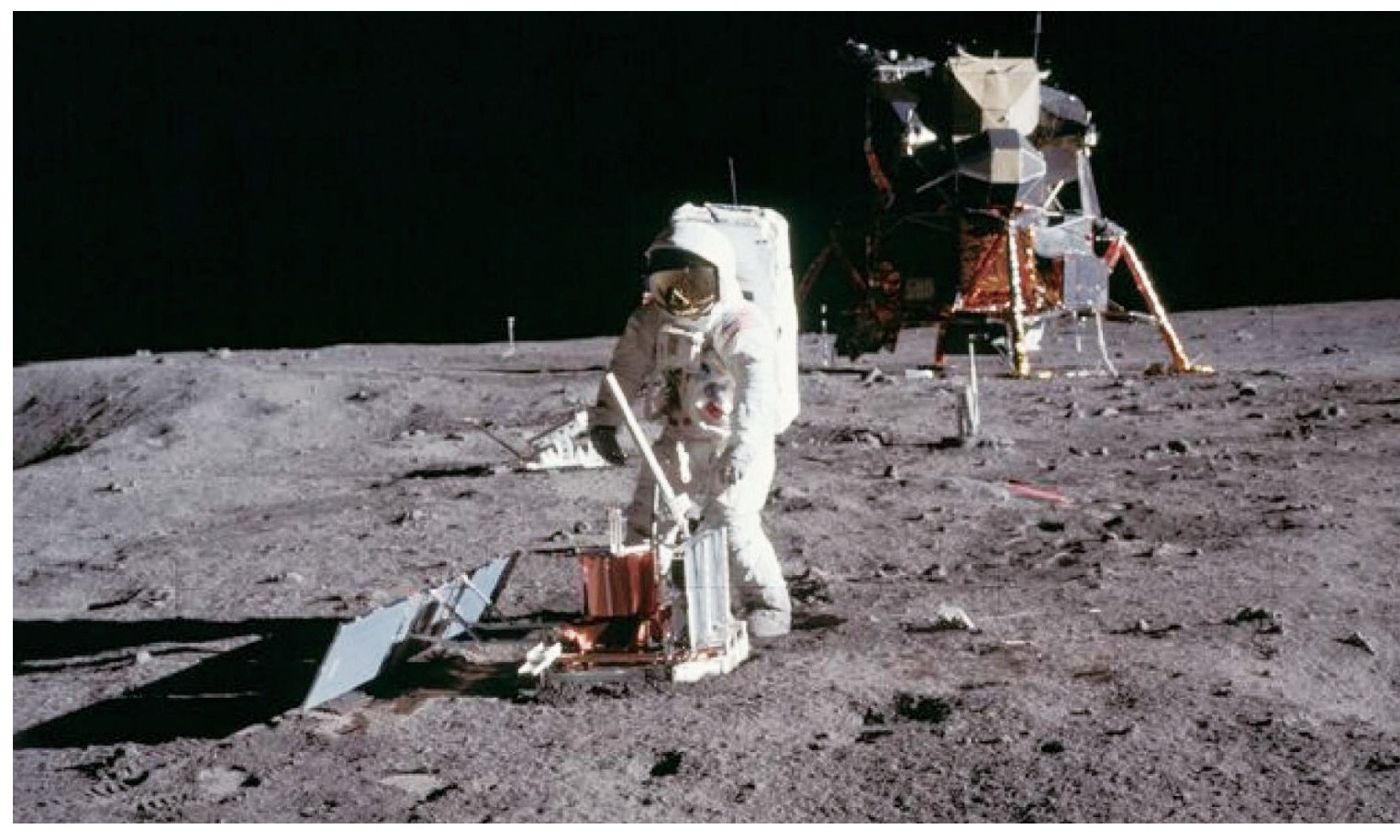 飞往月球是人类千百年来的梦想。自苏联卫星上天后,苏联的航天发展一直领先于美国,在月球探测方面也是如此。早在1959年,苏联发射的月球1号无人探测器进行了绕月飞行,开始了人类对月球的探测。1961年5月,美国总统肯尼迪提出了在60年代末将人送到月球的“阿波罗计划”,其任务包括研制土星5号火箭和阿波罗登月飞船。美国发射了“阿波罗”1~10号为载人登月作准备,发射“阿波罗”11~17号进行载人登月。1969年7月20日,“阿波罗11号”的登月舱降落到月面,实现了人类首次登月活动。3位执行此任务的航天员为指挥长尼尔·阿姆斯特朗、指挥舱驾驶员迈克尔·科林斯与登月舱驾驶员巴兹·奥尔德林。到了1972年,美国先后登月6次,对月球进行了初步考察,带回了约440千克的月岩样品,获得了大量月球照片、月球表面的科学数据等,大大提高了人类对月球的认识。