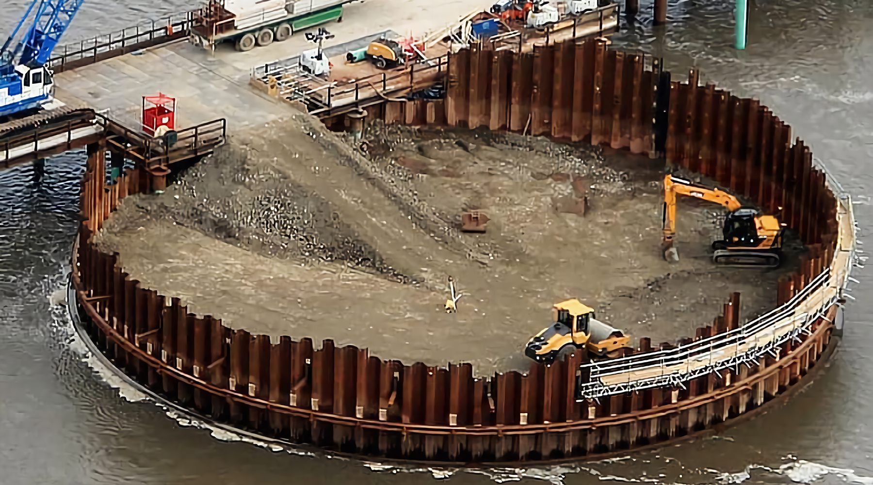 在陆地上建造桥墩很容易,那么能不能使用同样的方法在海中建造桥墩呢?当然,只需要解决一个问题,那就是海水。