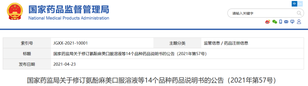 2021年4月23日,国家药监局公布了《关于修订氨酚麻美口服溶液等14个品种药品说明书的公告》(以下简称《公告》),对多个小儿用感冒药使用说明书进行了修订。