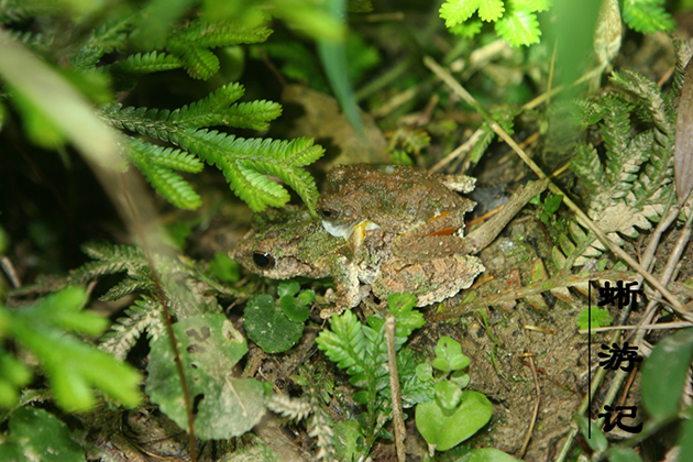 图3雌性锯腿原指树蛙背着“老公”前往繁殖场产卵
