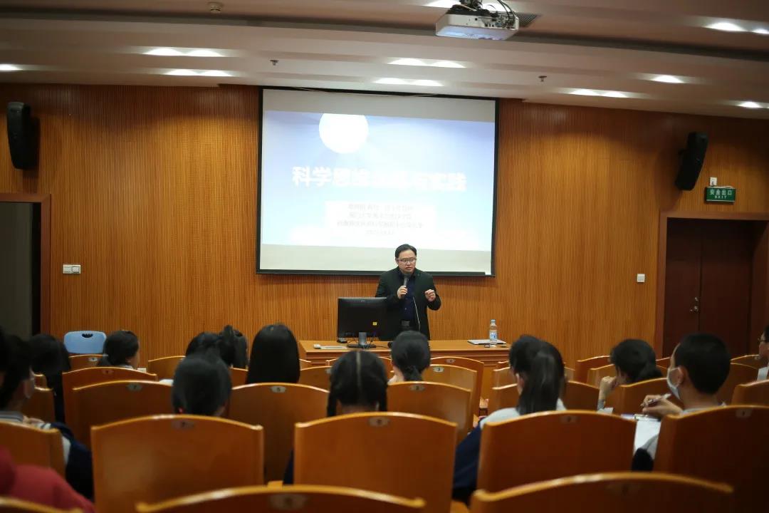 蔡明刚教授对中学生科学思维的培训与实践有着独到的见解。“同学们发现没有,科学思维的培育,不仅限于课堂上接收科学知识,参与科学实验等活动,体现科学思想的‘实践’,是贯穿各位同学的学习生涯,甚至是日常生活中的。”