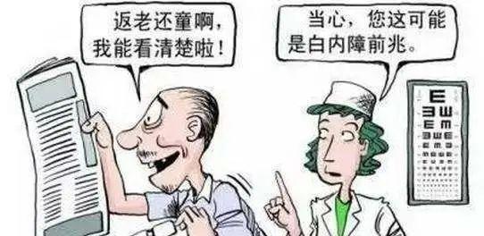 部分老人发现老花眼症状突然缓解,不用老花镜也能看书写字,十分高兴。其实这只是短暂现象,是白内障初期的典型症状。随着白内障病情逐渐加深,无论看远看近都会变的不清晰。