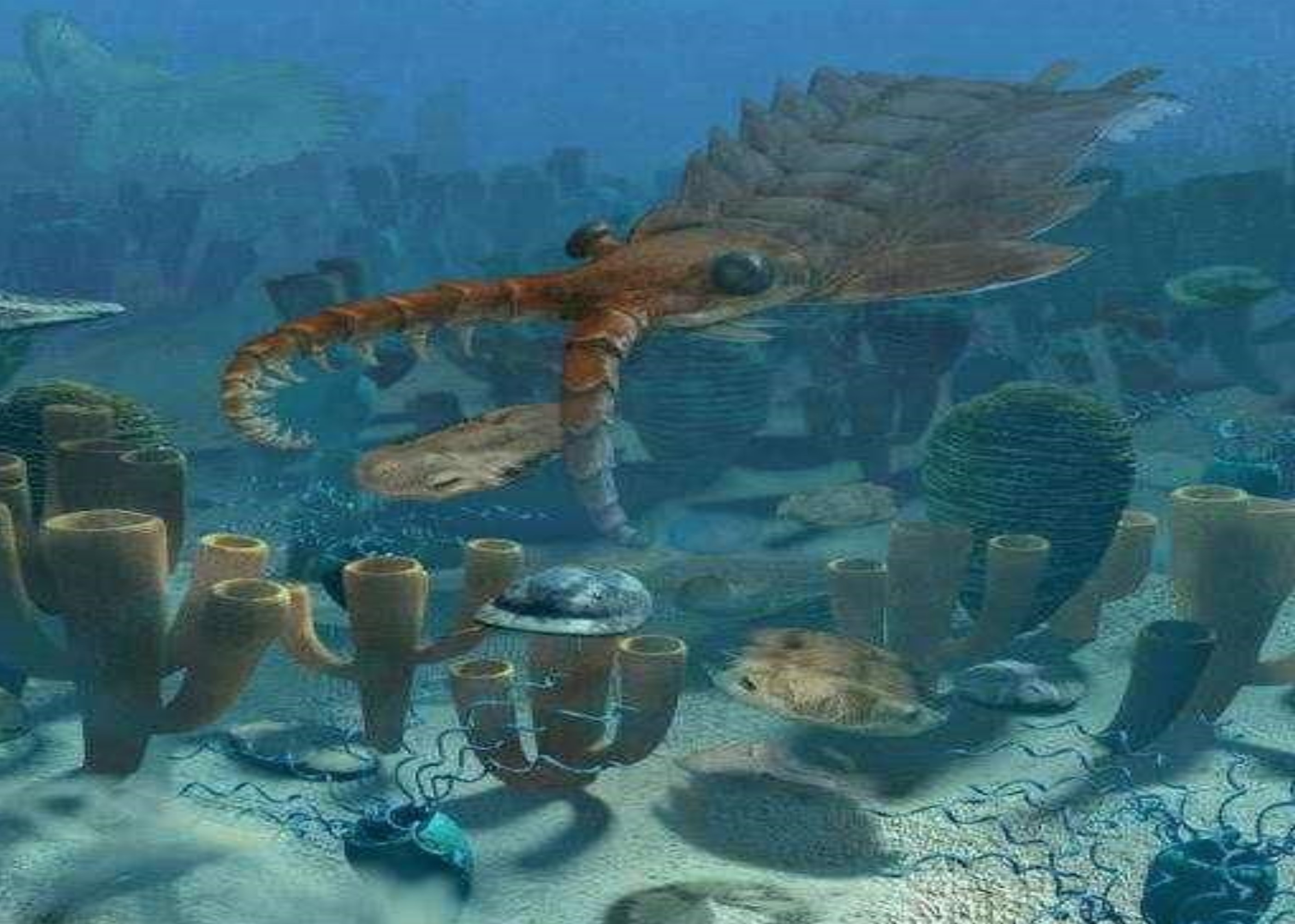 这之后一直到寒武纪,也就是距今5亿多年前,才出现大量肉眼可见生物,因此把这个时代以后叫做“显生宙”。所谓显生宙,就是生物开始以肉眼可见的形态显示出来,在这之前生物一直处于蛰伏状态,从第一个单细胞,分化出多细胞,然后一直演化进化,一直到显生宙才大爆发。