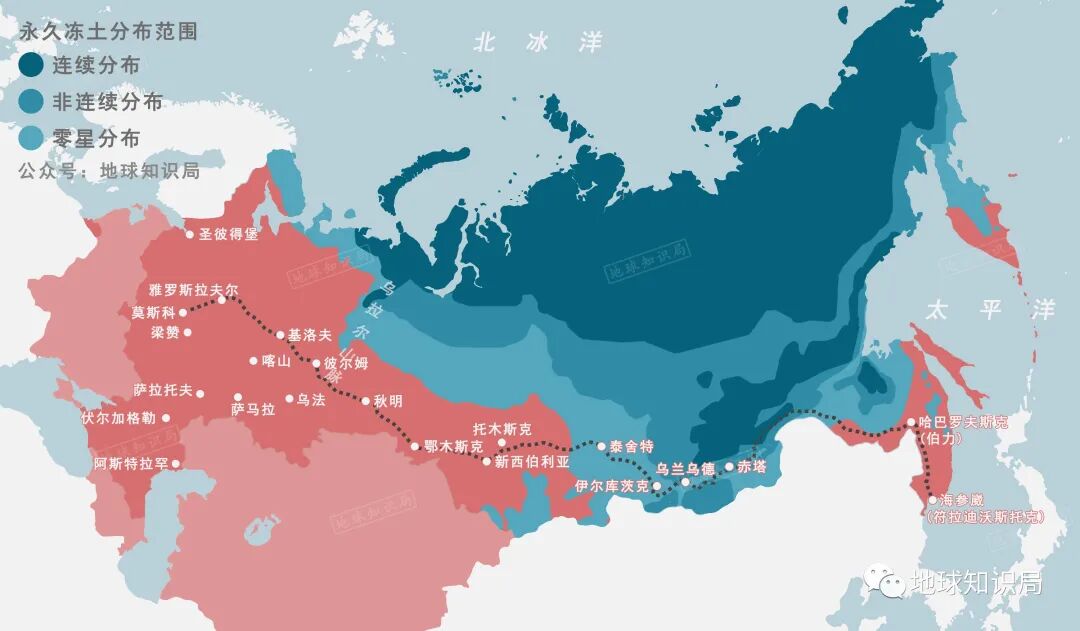 这个现象不难理解,根本原因还是地理环境——西伯利亚大部分土地为冻土,不但农作物生长困难,连建筑都需要特别的施工方案,成本高昂,并不适合人类居住。