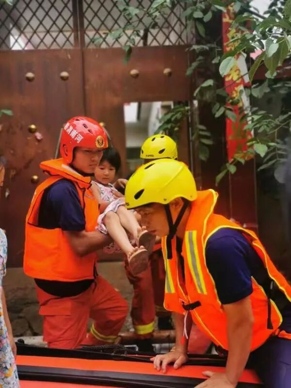 但家属院积水严重,救护车辆无法进入,郑东新区分局水上派出所所长刘昊,带着民警拖着皮筏艇人力浆划赶往产妇家中,并迅速用担架将其抬了下来。