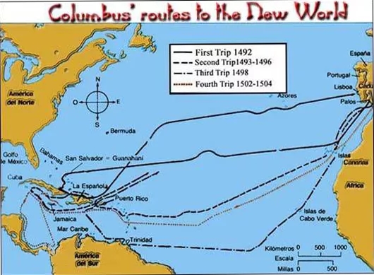 1492年8月3日,哥伦布率领着由3艘帆船和约90名船员组成的探险队从西班牙的巴罗斯港出发,开始了他期待已久的横渡大西洋的航程。