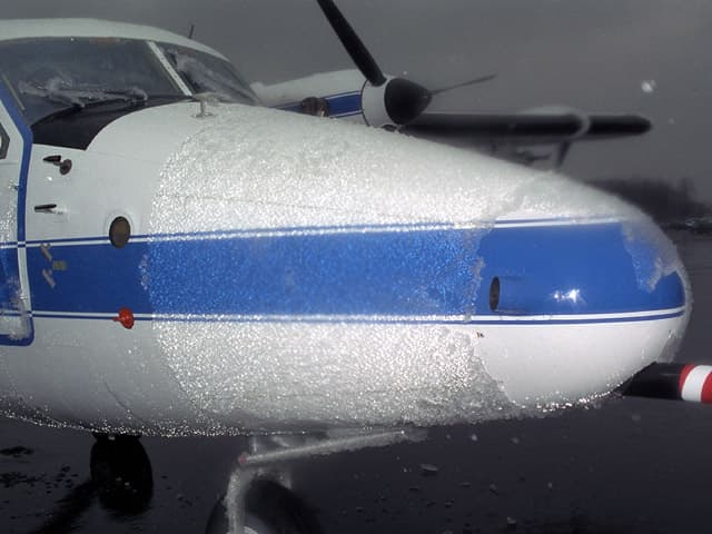 飞机结冰是影响航空飞行的主要天气之一。结冰是一种累积的危险。它通过增加重量、降低升力、降低推力和增加阻力来降低飞机效率。每一种效果都倾向于要么使飞机减速,要么迫使它向下。结冰还严重损害飞机发动机的性能。其他结冰影响还包括:仪表显示错误、无线电通讯中断、操纵面、刹车和起落架失灵等。