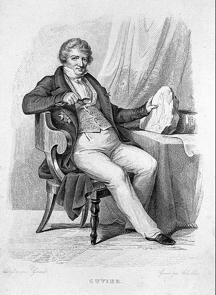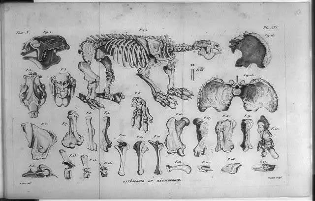 作为最早被人类发现和了解的史前巨兽,大地懒化石被发现的历史最早可追溯到1788年的阿根廷,随后骨骼碎片标本被收集起来,送到了西班牙马德里的国家自然科学博物馆陈列展出,并保存至今。不过当时的人们对这些巨大的遗骸一无所知,直到一位著名古生物学家的出现才揭开了它神秘的面纱,他就是乔治•居维叶(Georges Cuvier),古生物学和比较解剖学的祖师爷。