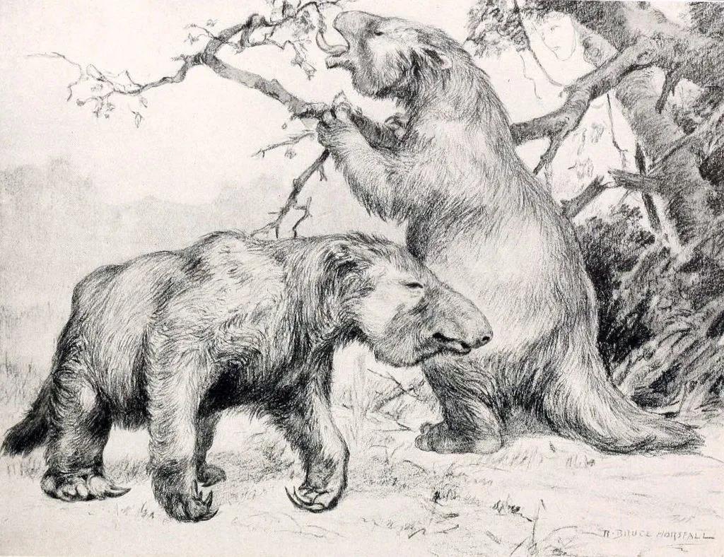 站立起来啃食树叶的大地懒复原图 | Robert Bruce Horsfall / Wikimedia Commons