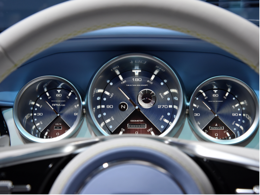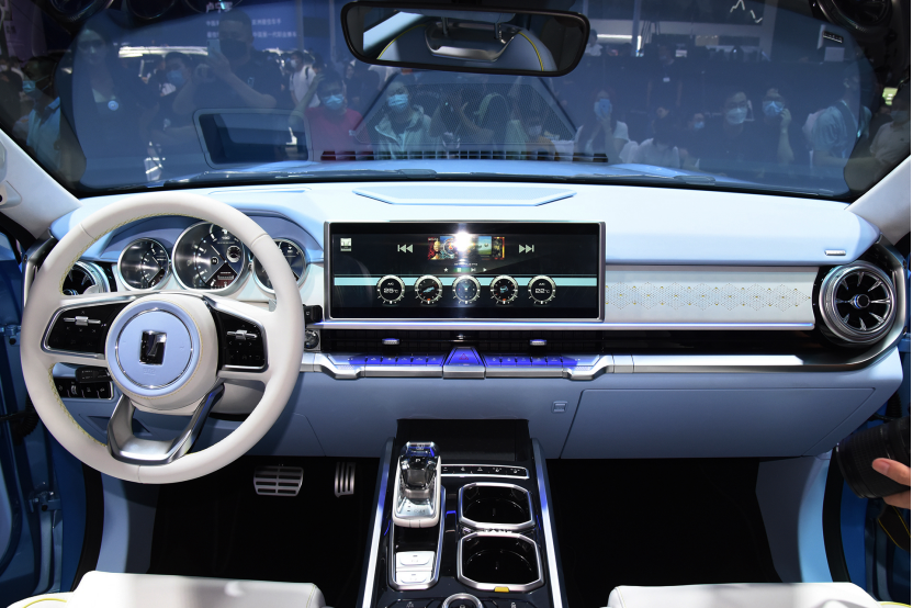 进入车内就像回到现实的感觉了,车内配备包括全液晶仪表、中控多媒体显示屏和副驾的娱乐屏。而方向盘的设计又向复古致敬,采用双色拼接的同时,还设计了半圈“铁环”的复古元素。车内整体都经得起推敲,细节处理的也绝对值得国货之光的称号。只是如果能提供车内配置选装的话,我想选择机械仪表。