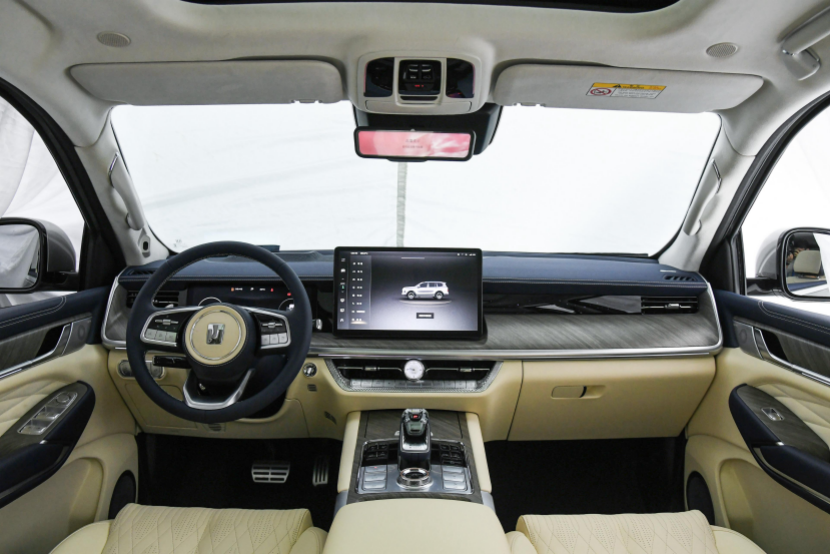 根据定位不同,坦克500车内配色也截然不同。前者便是双色车身的内饰配色,后者则是此前背书包版车型的配色。同时,从车内布局来看,在中控台配有木质纹理装饰,并配有钟表等。