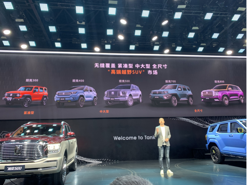 在这次车展上,坦克500的双色车身版也现身了。而不同于此前我们看到的那台背书包的,新款则更加符合豪华商务的定位需求。而这个双色,你们有没有想起来迈巴赫。