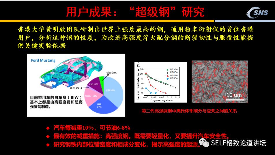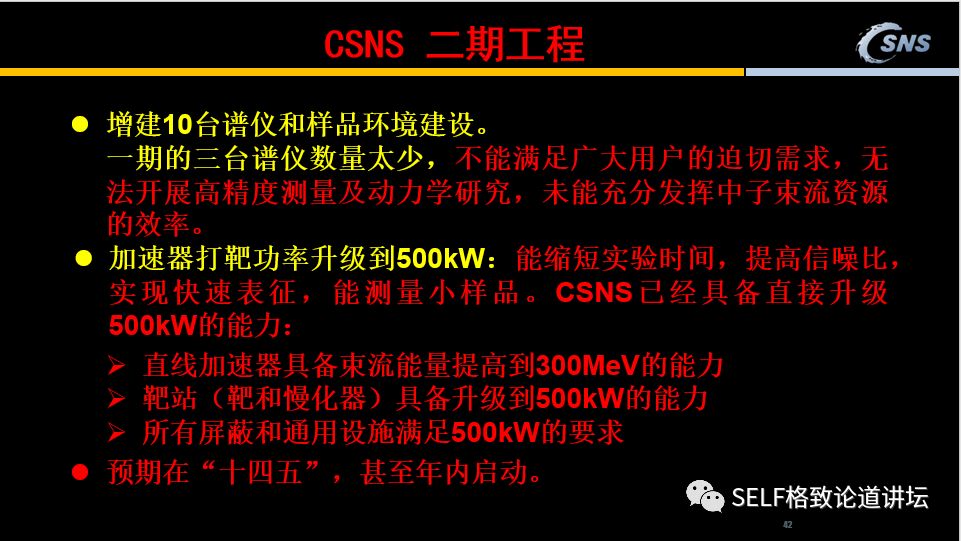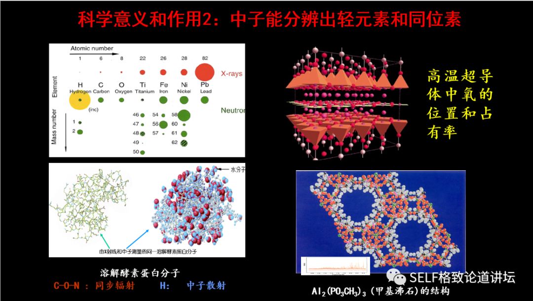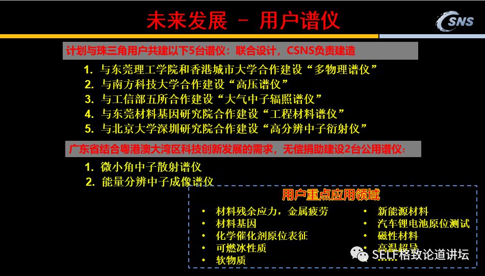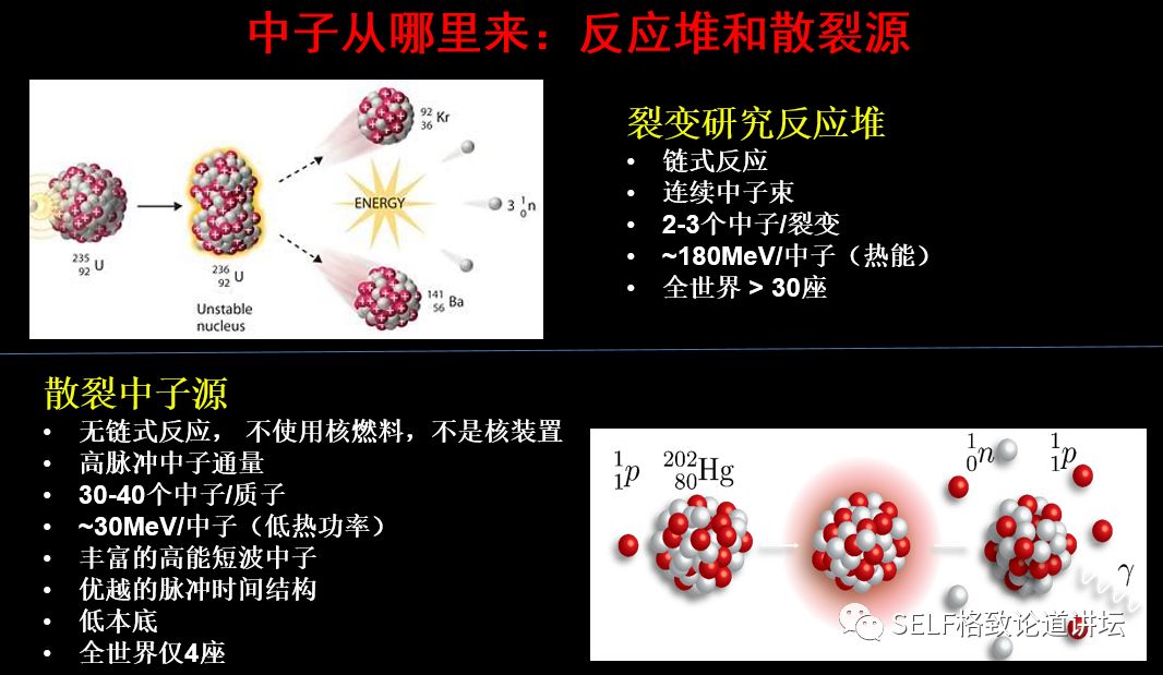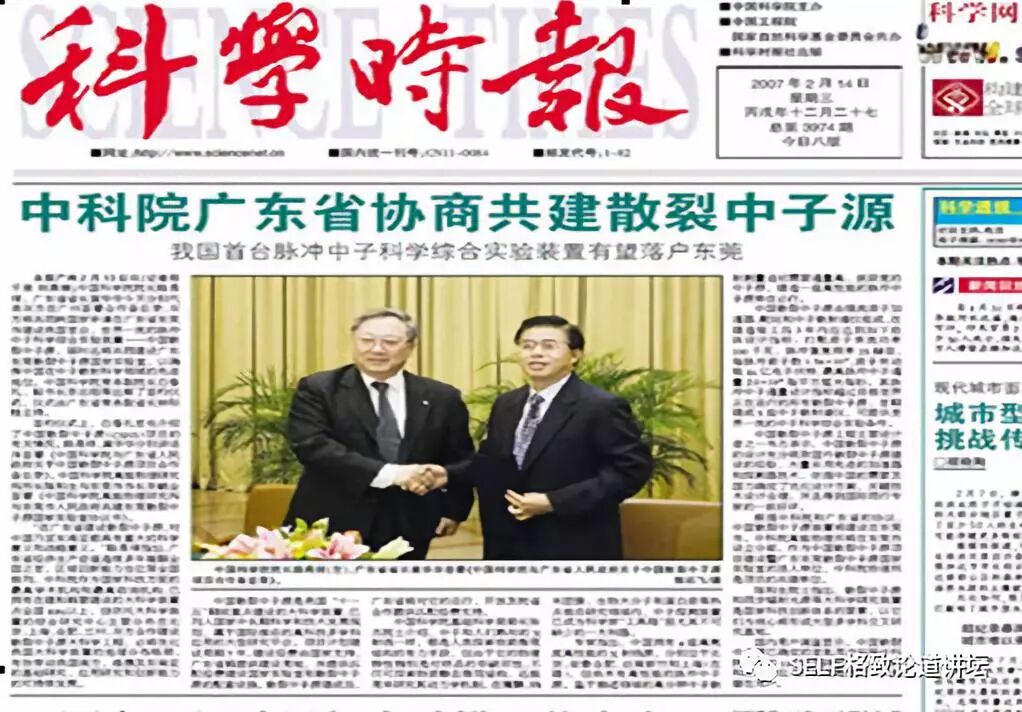 物理、化学诺贝尔奖大约一半都跟大科学装置有关。 或是提出来的新思想在大科学装置上得到了验证, 或是大科学装置提供了最先进的研究手段, 发现了重大科学突破或得到新的技术发明。 陈和生 · 中国科学院院士 散裂中子源工程指挥部总指挥 格致论道·湾区 | 2019年5月19日 广州 ▲ 中国散裂中子源 这是位于广东东莞大朗的中国散裂中子源,占地面积大概400亩,是一个典型的大科学装置。在它的前面 ,是珠三角环线高速G94的支线——9411,连接虎门到惠州。 我们为什么要建散裂中子源?我们为什么选在广东东莞?我们建设的成果怎样?初步的实验结果怎样? ▲ 二十世纪:物理学的世纪 20世纪的物理学经历了三次大的跨越,从原子物理深入到原子核物理,再深入到粒子物理。一百多年前,我们发现了原子是由原子核和电子组成的,后来我们又发现原子核是由质子和中子组成的。从上世纪60年代开始,我们逐步发现组成原子核的质子和中子又是由夸克组成的。 应该说,20世纪物理学的三次跨越,获得了巨大的研究成果,转换成了巨大的生产力。比如现在广泛利用的核电、半导体、激光、计算机、GPS等,它们都离不开过去这一个世纪物理学的进步。 同时,这些技术对社会和政治产生了极为深刻的影响。一方面,核武器始终是非常严峻的国际政治问题。另一方面,我们现在广泛使用的互联网也是在上个世纪物理学物质结构研究当中发明出来的。 物理学的三次跨越不仅为物理学的发展提供了服务,更产生了先进的研究手段,包括同步辐射光源、散裂中子源等大科学装置。 国家综合实力的象征 已完成:10% ////////// 随着对物质结构的研究深入到原子核和粒子层次,我们就需要能量越来越高的粒子来研究越来越小的尺度,这就要利用大科学装置。 中国的大科学装置建设起源于北京正负电子对撞机。这是上世纪80年代中期,邓小平同志的一个重大决策。他说:我们建设正负电子对撞机,就是为了让中国的高科技在世界上占有一席之地。应该说,小平同志的战略目标正在逐步实现。 大科学装置有两类,一类是粒子物理和核物理专用的加速器、核聚变装置、大型的天文望远镜如贵州的“天眼”等;还有一类是同步辐射装置、散裂中子源、自由电子激光等等。 大科学装置被称为“重大科学基础设施”、“大科学工程”,成为国家科技创新体系的关键单元之一,是国家综合实力的象征。 几十年来,基于大科学装置的研究获得了重大科学突破,大装置的建设、运行和研究都产生了很多重大科学技术革新,有力地推动了高新技术的发展。 根据统计,物理、化学诺贝尔奖大约一半都跟大科学装置有关。或是提出来的新思想在大科学装置上得到了验证,或是大科学装置提供了最先进的研究手段,发现了重大科学突破,或得到新的技术发明。 为什么要建设散裂中子源? 已完成:20% ////////// ▲ 1994年诺贝尔物理学奖 中子散射是探测物质的超级显微镜。加拿大的布罗克豪斯和美国的沙尔首先提出了这个创新的思想。布罗克豪斯提出,中子的散射可以探测原子、分子及其团簇的位置,而沙尔认为不仅可以探测位置,还可以探测它的运动。所以他们在1994年获得了诺贝尔物理学奖。 为什么要用中子散射来研究物质结构呢?现在研究材料结构的手段主要是同步辐射光源和散裂中子源。 同步辐射用于探测原子核外的电子分布,而中子散射可以测量中子与样品的原子核散射后的方向和能量分布,它可以探测物质的磁性、原子核的位置、工程大试样,因为它的穿透性很好,还能探测物质里的动态过程。 与同步辐射光源相比,散裂中子源造价高,技术复杂,而且探测困难,实验难度高,因此世界上只有4台散裂中子源,同步辐射光源约60余台。然而,许多前沿科学的关键问题和国民经济持续发展及国家安全的瓶颈问题,只有用散裂中子源才能解决! 中子从哪里来?一个方式就是反应堆,四川绵阳和北京的原子能研究院都有反应堆,它是通过链式反应产生的,全世界大概有30座。 另一个方式是散裂中子源。用粒子去打重金属的靶,它不使用核燃料,不是核装置,所以它对安全性的要求很低。现在世界上很难找到建反应堆的地方,所以目前中子研究慢慢地都往散裂中子源发展,它的优点很多。 散裂中子源是怎么工作的呢?我们用高能的质子去打靶,产生的中子会打到样品上,然后我们再去探测。 中子的作用体现在哪些方面?第一是它有磁矩,所以它能够研究磁性的结构。计算机的存储是磁性材料,超导也与磁性密切相关,所以它是研究磁性材料非常关键的一个技术。 第二是它能够区分轻元素和同位素。大家可以看到,中子跟各种原子核的反应截面变化非常大,不像同步辐射光是跟它的原子核的电荷平方成正比,所以它对轻的元素不敏感。 比如说溶解酵素蛋白分子,用同步辐射,你看不到是碳、氧、氮,但是用散裂中子源,氢的原子都看到了,所得到的东西要丰富得多。类似的高温超导和其它的各种结构都需要散裂中子源。 再比如,大家非常关心可燃冰,它是一种能够为我们提供洁净持续发展的能源。但是我们需要了解可燃冰的性质,如果不了解它的性质就去开采它,可能会引起一些自然灾难。 所以我们必须模拟可燃冰所处的高压环境,对其进行深度研究。模拟高压环境需要非常厚的容器,必须要用中子才能够穿透。此外,用中子散射研究