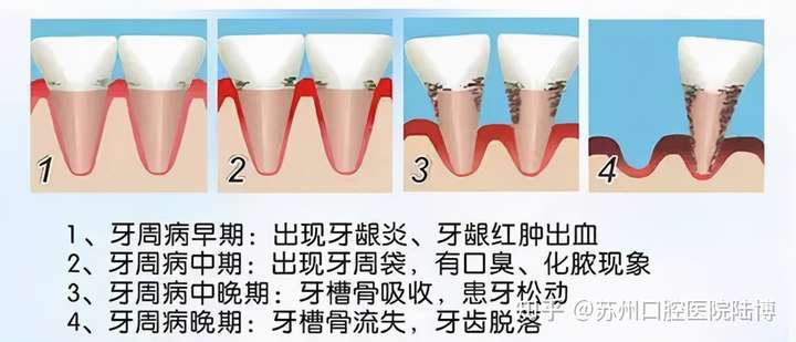 其主要临床表现是牙龈炎症、出血、牙槽骨吸收、牙槽骨高度降低、牙齿松动,严重者牙齿可自行脱落或者被动拔除。