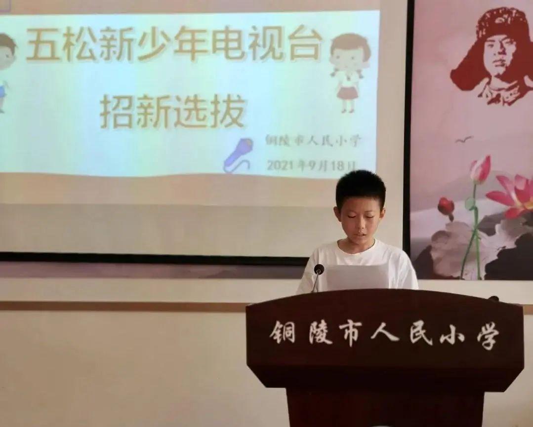 此外,我校还有全市唯一的校园电视台——“五松新少年广播电视台”,每周一期,每期节目由学生自编自导完成。每学期选拔新主持人,每月举行主持人基本功大赛,每周进行主持人培训,不断升级电视台栏目,增设《科普互联网》《智慧队建》等栏目,有一定的影响力,荣获市级优秀社团称号。