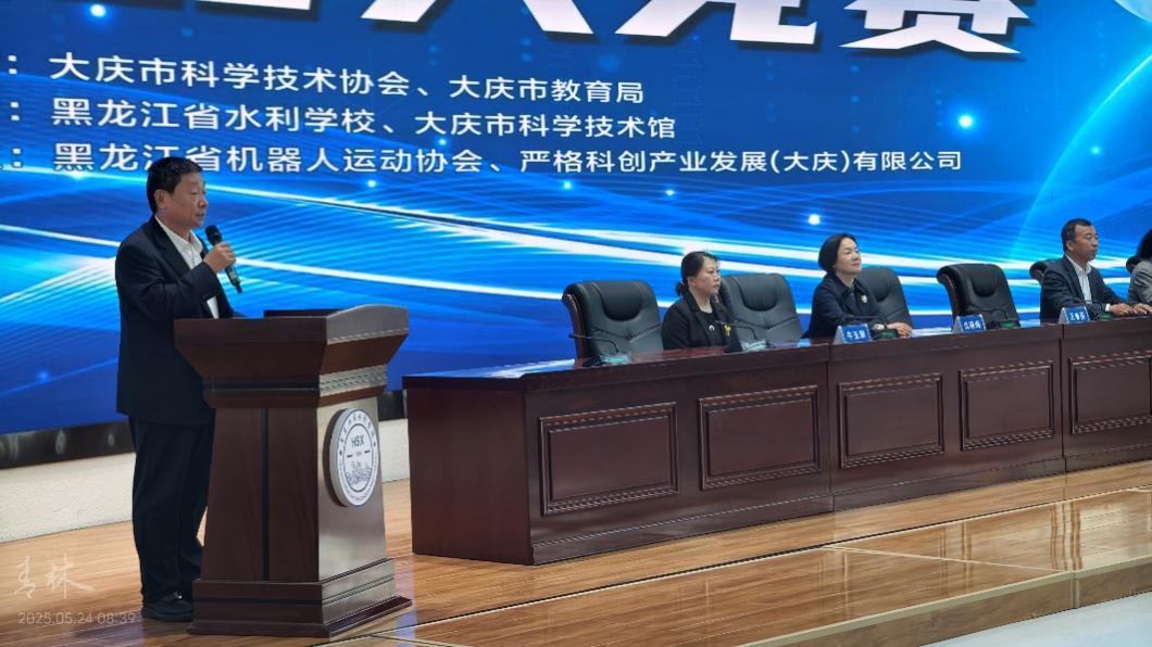2025年5月24日,由大庆市科学技术协会、大庆市教育局主办,黑龙江省水利学校、大庆市科学技术馆承办,黑龙江省机器人运动协会、严格科创产业发展(大庆)有限公司协办的大庆市青少年机器人竞赛在黑龙江省水利学校隆重举行。本次竞赛以“机甲筑梦 智创未来”为主题,大庆市科学技术协会副主席张静艳、大庆市教育局二级调研员仇晓梅、大庆市科学技术协会科普部部长牛玉翠、大庆市教育局语信科负责人葛梦杨等领导出席会议,学校党委书记王春雨、校长袁峰出席开幕式。