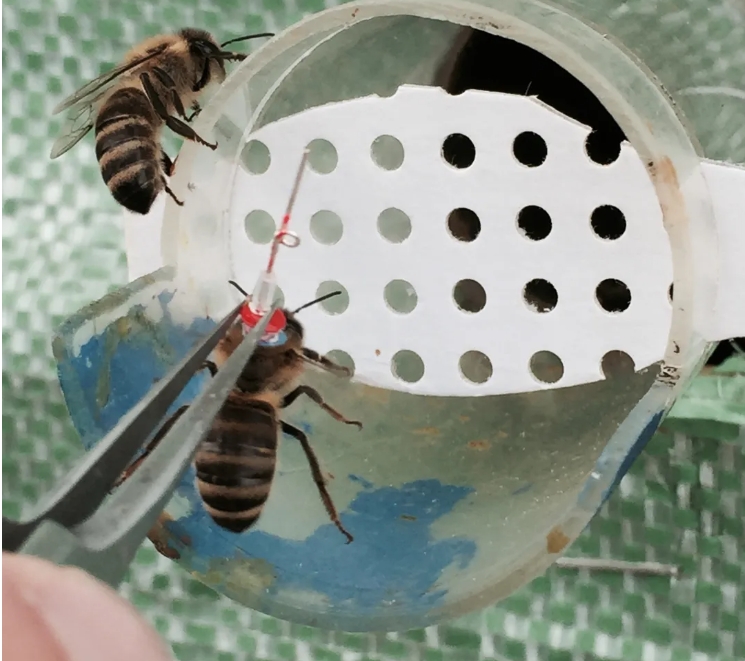 中科院西双版纳热带植物园汪正威与合作者们从蜜蜂蜂群高效的舞蹈交流机制入手研究。他们对跟随蜂进行进行标记、带到不同的释放点释放后,利用雷达追踪,提取并分析跟随蜂飞行的轨迹。