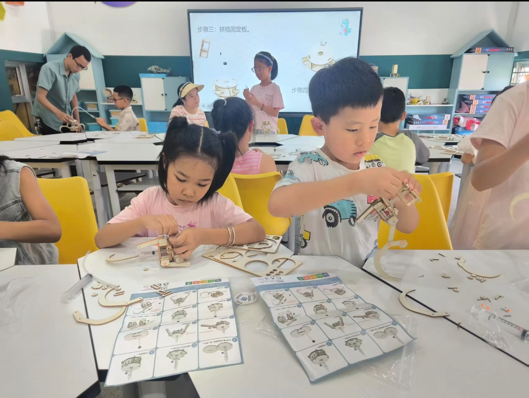 7月20日的液压机械爪制作也是人气爆棚!在科技辅导员的指导下,孩子们认识了由注射器、软管组成的“液压系统”,亲手组装出靠液体压力驱动的机械爪。