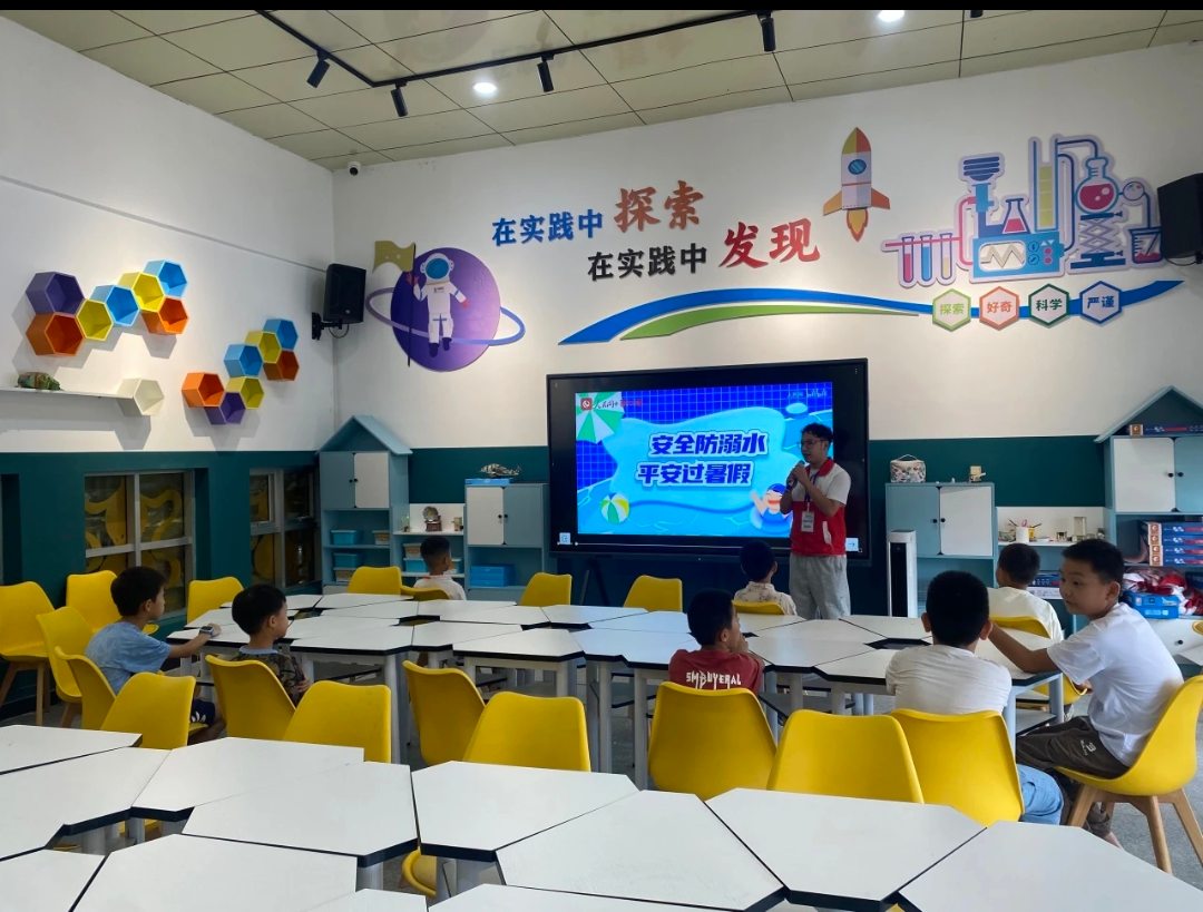 安全教育与精神传承并行。活动同步开展了防溺水安全教育和科学家精神宣讲。通过动画演示和互动问答,孩子们掌握了“六不一会”原则和紧急救援技巧。科学家精神宣讲环节,辅导员以詹天佑事迹为引,鼓励孩子们学习攻坚克难、爱国奉献的科研精神。