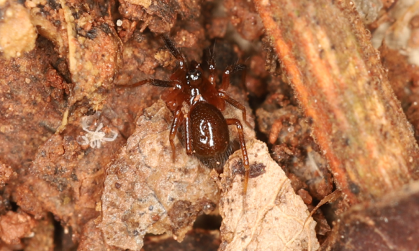 故事要从2022年12月8日说起。那天,研究团队在丹霞山阳元石景区海拔202米的砂岩壁上“寻宝”——他们筛着落叶、扒着石缝,突然发现了几只比芝麻还小的蜘蛛。这些小家伙身长只有2.3毫米(差不多3根头发丝并排那么长),八条腿细得像丝线,却在岩石上爬得稳稳当当,活像一群“迷你蜘蛛侠”在执行秘密任务。
