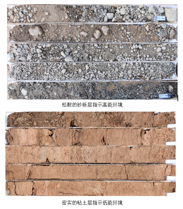 岩心中最具动感的特征,莫过于垂向上的粒度变化,科研人员通过沉积物的岩性就能判断当时的沉积环境。这是因为在自然界,物质的运移主要是依靠水的力量。