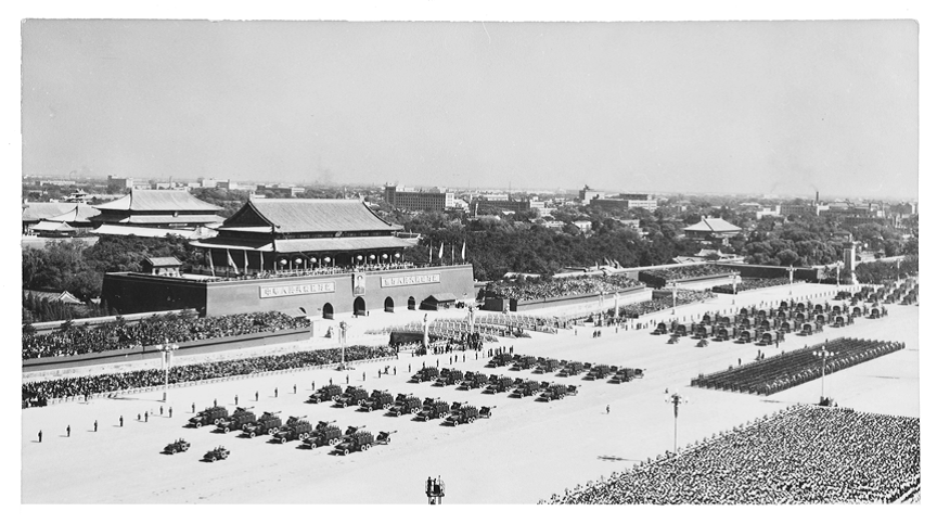馆藏照片:建国十周年人民解放军部队驾驶解放CA10装备我国自制军用设备走过天安门广场接受国家领导人检阅
