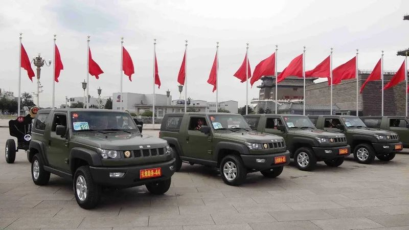 2015年9月3日,举世瞩目的“中国人民抗日战争暨世界反法西斯战争胜利70周年”阅兵活动中,北京BJ40担当起护送“国之礼器”的使命,成为56门礼炮的牵引车