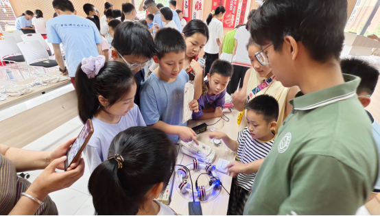 多形式创新活动载体,激活科普“沉浸式体验”活力源。为打破传统科普“说教式”局限,“合启科创”以“趣味化、互动化、场景化”为核心,打造沉浸式科普体验。在“物理实验天地”活动中,科技志愿者通过“塑料尺吸碎纸”演示静电原理,用简易装置呈现磁悬浮现象,让抽象知识变得可触可感。暑期推出“点亮童心・巧手造光”亲子手工活动,青少年们在制作小夜灯的过程中,同步学习电路连接基础知识。防灾减灾日期间,联合消防救援站开展“油桶灭火实操”,从理论讲解到模拟演练,让居民亲手掌握灭火器“提、拔、握、压”操作要领。知识问答、情景模拟、正念呼吸训练等形式贯穿各类活动,让科普从“听进去”变为“动起来”,切实提升科普实效。