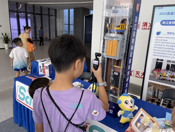 在“SciLuck科普长桌”专区中,省特科院设置科普展台,直观展示的电梯互动模型、门联锁保护、限速器等核心展项,让青少年亲手解锁电梯安全原理;大型游乐设施、电梯应急救援等沉浸式VR场景,让青少年在虚拟实操中学习应急技能;同步发放的特种设备系列科普读本,更是将专业知识转化为趣味内容,让青少年在阅读中领会特种设备安全知识。