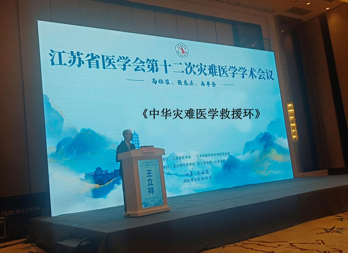 ▲王立祥教授于江苏省医学会第十二次灾难医学学术会议开幕式上分享《中华灾难医学救援环》