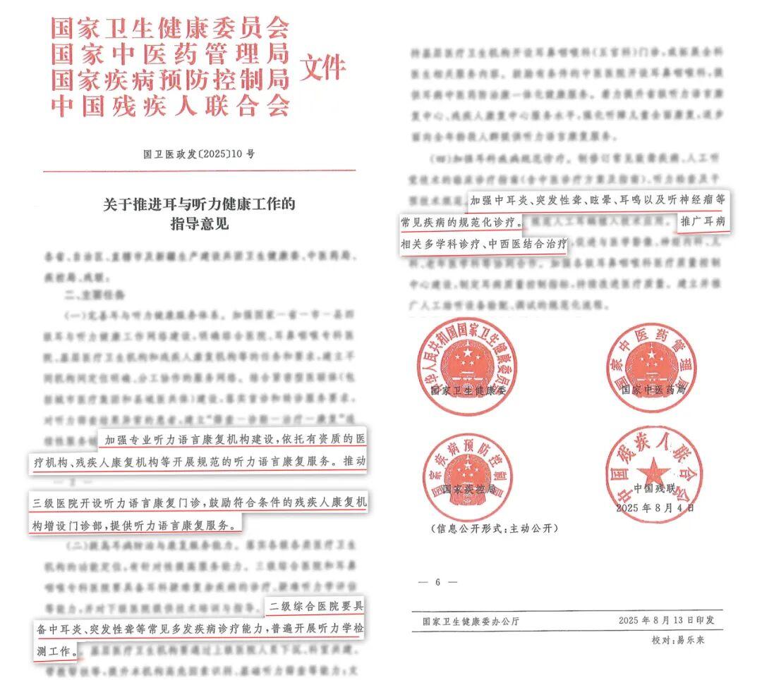 近日,国家卫健委、国家中医药管理局、国家疾控局、中国残联联合发布了《关于推进耳与听力健康工作的指导意见》。文件提出,要加强听力康复机构建设,提升突聋、耳鸣等常见疾病的诊疗水平,推广中西医结合模式,逐步完善从筛查、诊断到康复的连续性服务体系。