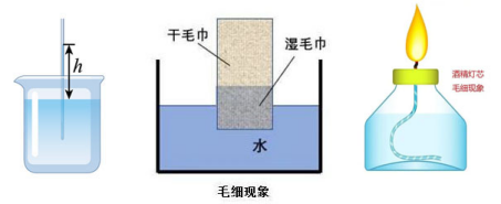 当你将一根细玻璃管插入水杯中,会观察到管内的水面仿佛被无形的手牵引,缓缓上升,最终超过杯中的水面水平。如果换用更细的管子,水面的上升高度还会进一步增加。搭在水缸边的干毛巾,最初只有垂入水中的部分被浸湿,但随着时间的推移,水分会沿着毛巾的纤维"攀登",最终让整个毛巾都变得湿润。植物的茎脉内部布满了极细的维管束,这些天然的毛细管网将土壤深处的水分"抽取"上来,输送至最高的叶片。酒精灯的灯芯将酒精引向火焰,维持燃烧过程。动物身体内的毛细血管网络,也利用类似的原理输送血液和营养物质。还如:砖块吸水、粉笔吸墨水、化妆棉吸收爽肤水等等现象,