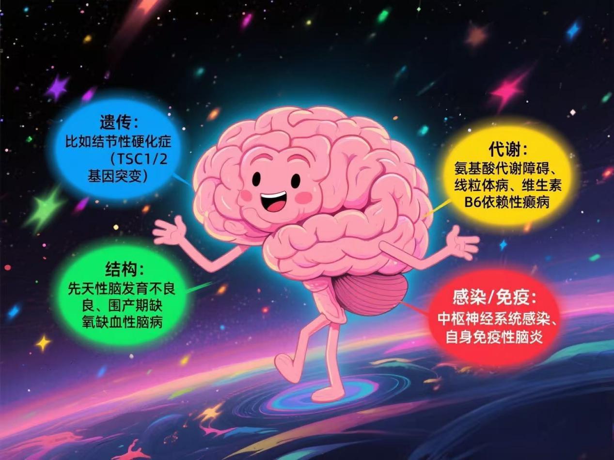 遗传:比如结节性硬化症(TSC1/2 基因突变)。