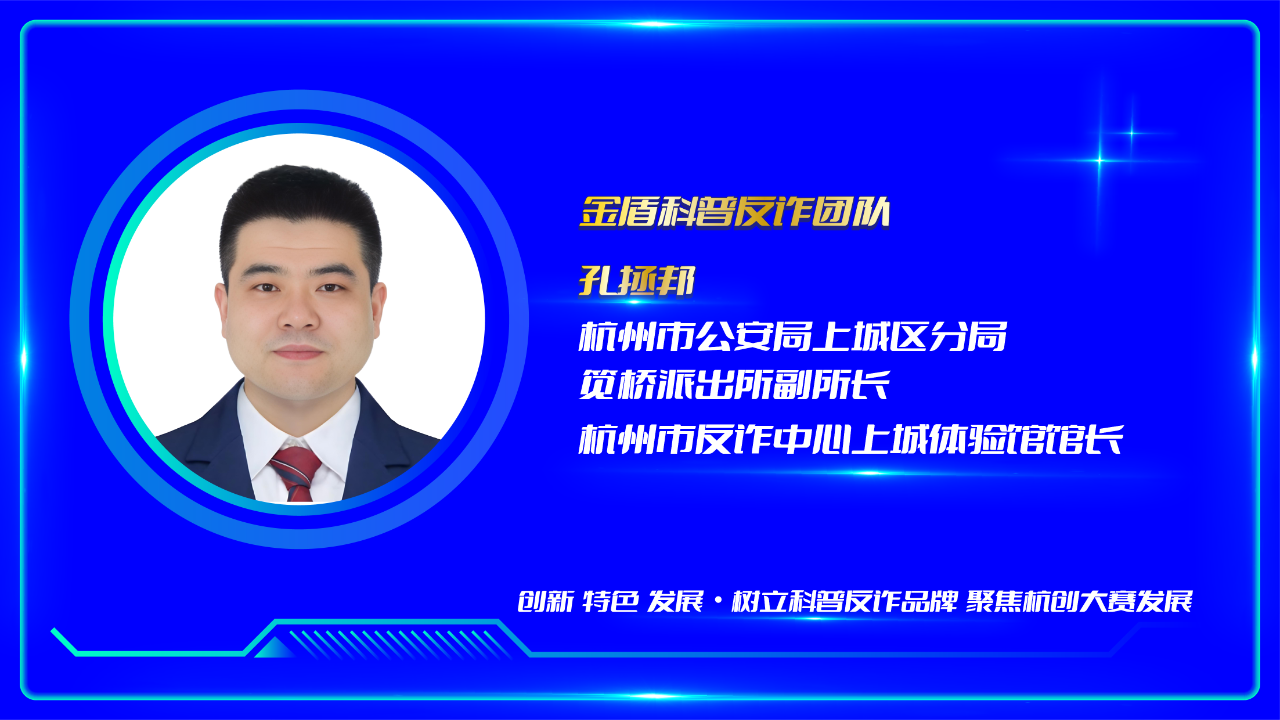 金盾科普反诈团队首创“科普反诈”杭州样板。2024 年,由浙江省科技传播协会、杭州市科技传播学会打造杭州市反诈中心上城体验馆,引入VR反诈一体机、反诈测试机、反诈万花筒、“小宝”反诈机器人等智能科普反诈设备,以技术反制筑牢科普反诈防线,推动实现“多一人体验,少一人被骗”成效,累计接待省内外访客7万余人次、考察团40余批;2025年7月,建成杭州市科普反诈体验馆,融合科普反诈互动体验、反邪教宣传与杭创大赛成果展示,进一步锚定“实体化运营为根基、特色化发展为引擎、全链条链接为纽带”发展理念,推动科普工作向“精准化、场景化、全民化”迈进,以“科技向新”“科普向心”护航美好生活。8月27日上午,韩国全罗南道警察厅公共安全部长金萬洙率团到访上城反诈体验馆,开展参观交流活动,对韩国开展反诈宣传具有重要借鉴意义。