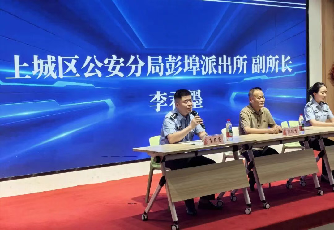 彭埠派出所副所长李君墨结合辖区实际情况介绍。“彭埠街道中小企业多,涵盖科技、商贸、服务等领域,企业经营中的诈骗风险、居民生活中的诈骗,都是需要重点防范的领域。” 以数据点明辖区反诈重点,进一步强调:“优化营商环境不是一句口号,企业能安心谈合作、居民能放心管钱财,才是最实在的‘安全感’。今天的活动就是要把‘科普反诈工具’送到大家手里,让每个人都成为自身财产的‘守护者’。”