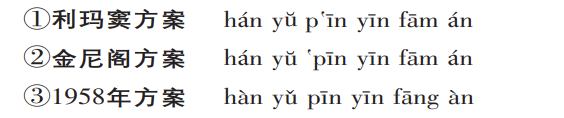 以下是三种方案对“汉语拼音方案”六字的注音比较: