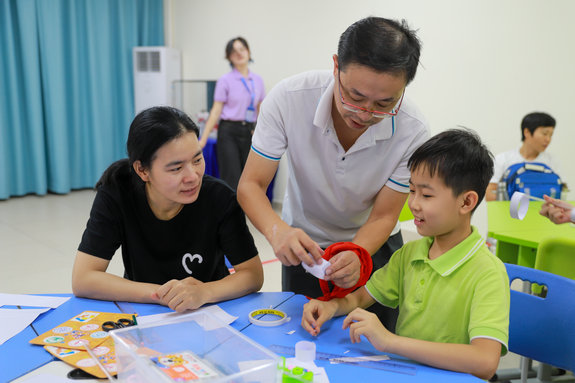 科学手工区,参与者制作纸环飞机,在实践中体验空气动力学的魅力。