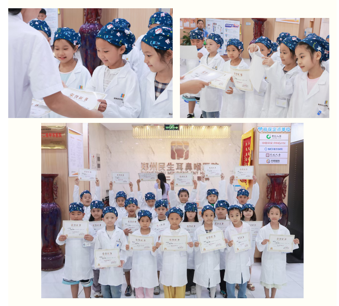 “我是小医生”职业体验课自2022年开设以来,已成为郑州民生耳鼻喉医院面向儿童群体的品牌公益项目,累计吸引数千名孩子参与其中。活动通过真实诊疗场景与趣味教学的结合,帮助孩子们建立基本的健康认知与初步的医学兴趣。