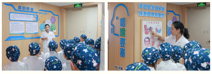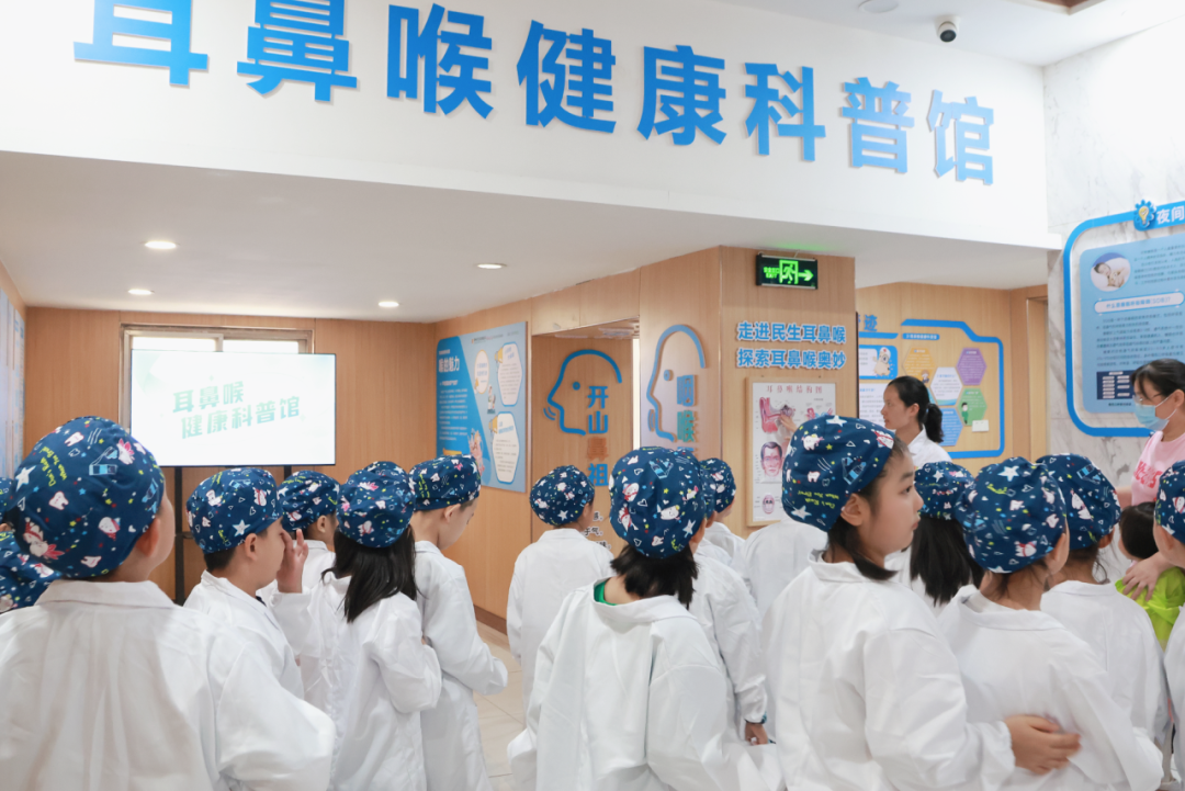 作为本次体验的重要一环,孩子们走进医院耳鼻喉健康科普馆,在讲解员的带领下依次“解锁”不同功能区域,边走边学,边看边问,开启一场“沉浸式”的耳、鼻、喉探索之旅。