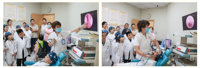 在医生指导下查看自己耳道和鼻腔内部,“鼓膜像一面小鼓,还会反光!”让不少孩子感到惊喜又新奇。