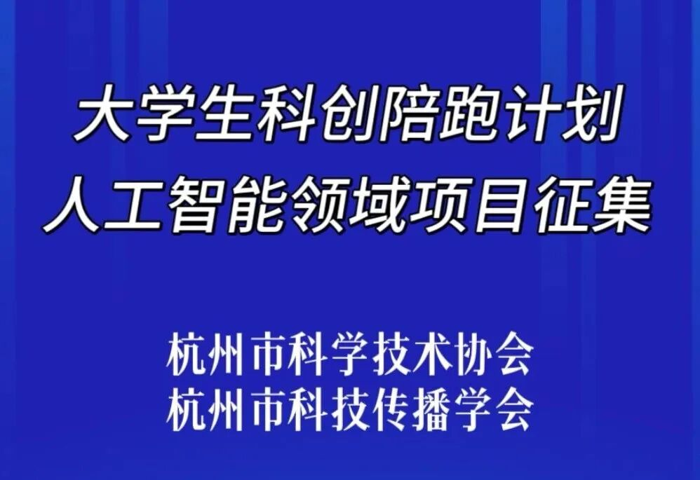 同时征集“大学生科创陪跑计划”人工智能领域项目,申报杭创大赛的项目团队可同时申报“大学生科创陪跑计划”。每个项目需提交《“大学生科创陪跑计划”人工智能领域项目报名表》(关注“浙江科技在线”公众号下载附件报名表)和项目报告书,项目材料报送电子邮箱:kjcb2017@163.com,邮件主题注明“科创陪跑计划”。
