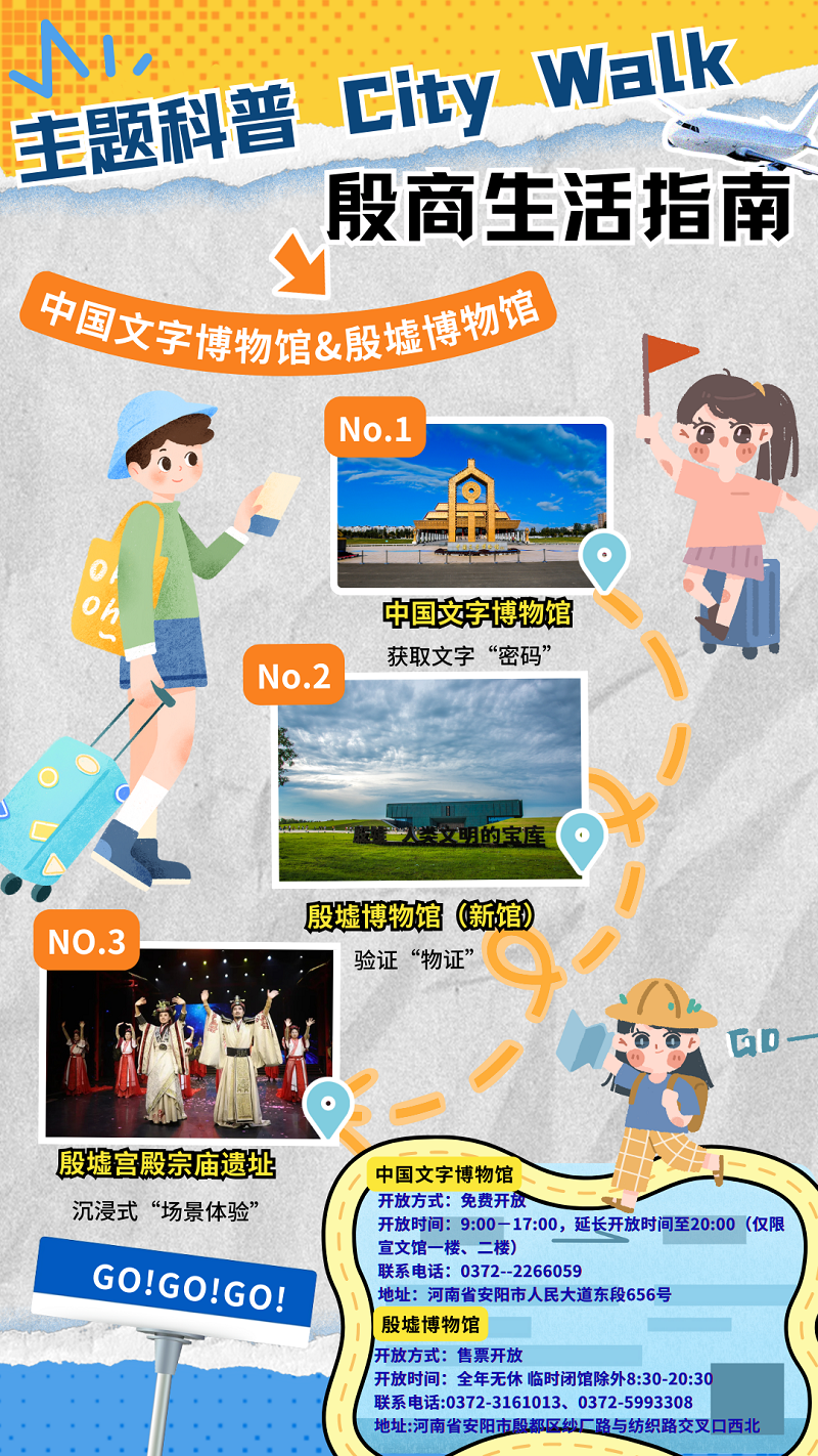 [中国文字博物馆(获取文字“密码”)]→(交通连接)→[殷墟博物馆(新馆)(验证“物证”)]→(步行)→[殷墟宫殿宗庙遗址(沉浸“场景”)]