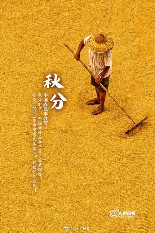 秋分,是二十四节气中的第十六个节气,通常在每年的9月22日、23日或24日。是中国古代最早确立的节气之一。 秋分太阳直射赤道,昼夜均分,从秋分起,白天越来越短于夜 ,昼夜温差继续加大,天气逐渐转凉。