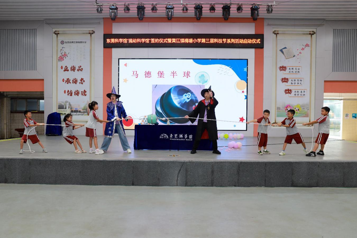 为提升全民科学素养,助力“百千万工程”,推进我市全国中小学科学教育实验区建设,9月9日下午,东莞科学馆“流动科学馆”签约仪式暨黄江镇梅塘小学第三届科技节系列活动启动仪式在梅塘小学隆重举行。