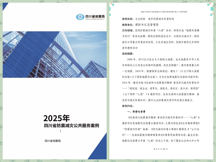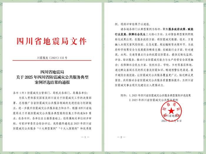 9月9日,四川省地震局发布了2025年四川省防震减灾公共服务典型案例评选结果通报。由5•12汶川特大地震纪念馆编制、市应急管理局推荐的《矢志创新 筑牢防震减灾科普防线》案例,荣获“十大典型案例”称号。该案例经过纪念馆党组专题研究、统筹部署、创新举措,在防震减灾科普领域取得了显著成效,为全市乃至全省的防震减灾工作树立了典型示范。