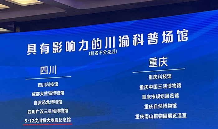 凭借出色的科普工作,5•12汶川特大地震纪念馆荣获多项荣誉。被四川省科协、四川省科技厅、重庆科协、重庆科技厅授予“具有影响力的川渝科普场馆”;“弘扬抗震救灾精神(地震科普)主题系列课程”入选国家文物局、教育部公布的“大思政课”优质资源精品项目名单;科普短视频《防震减灾科普系列之——地震预警》荣获四川省科技厅“2023年四川省优秀科普微视频二等奖”;《“山川永纪”——弘扬抗震救灾精神(地震科普)情景讲述》思政课荣获四川省革命博物馆纪念馆“一馆一课”金课;《生命教育课程》荣获四川省研学教育课程推荐。