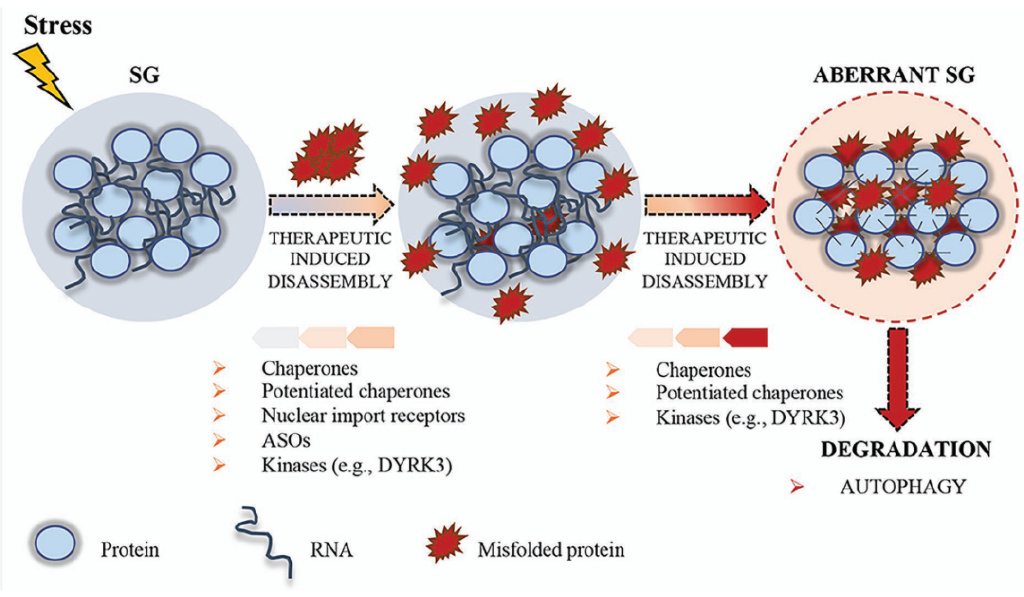 付向东:所有的东西都跟遗传信息的表达有关,比如它表达出来的RNA在神经疾病里面有一个最大的共同特点,就是会形成病理性聚集体(pathological aggregate)。实际上病理性聚集体都有RNA的,还有细胞里面的一些应激反应产生RNA的聚集物,像应激颗粒(stress granule),也是有RNA的。这些东西可能和疾病的进程有极大的关联,同时这也是我们了解疾病机制的一个窗口。