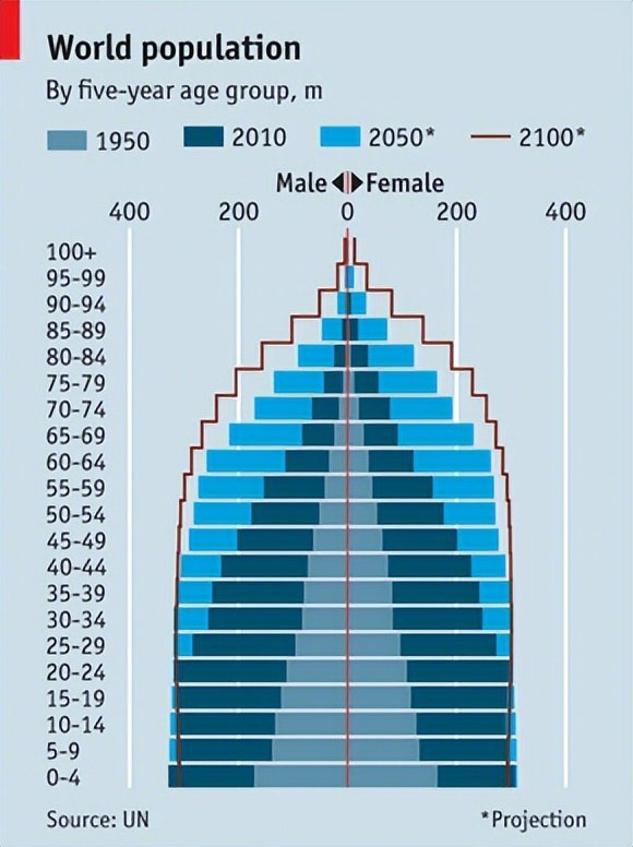 不同年份各年龄阶段平均寿命预测 |图源:economist.com