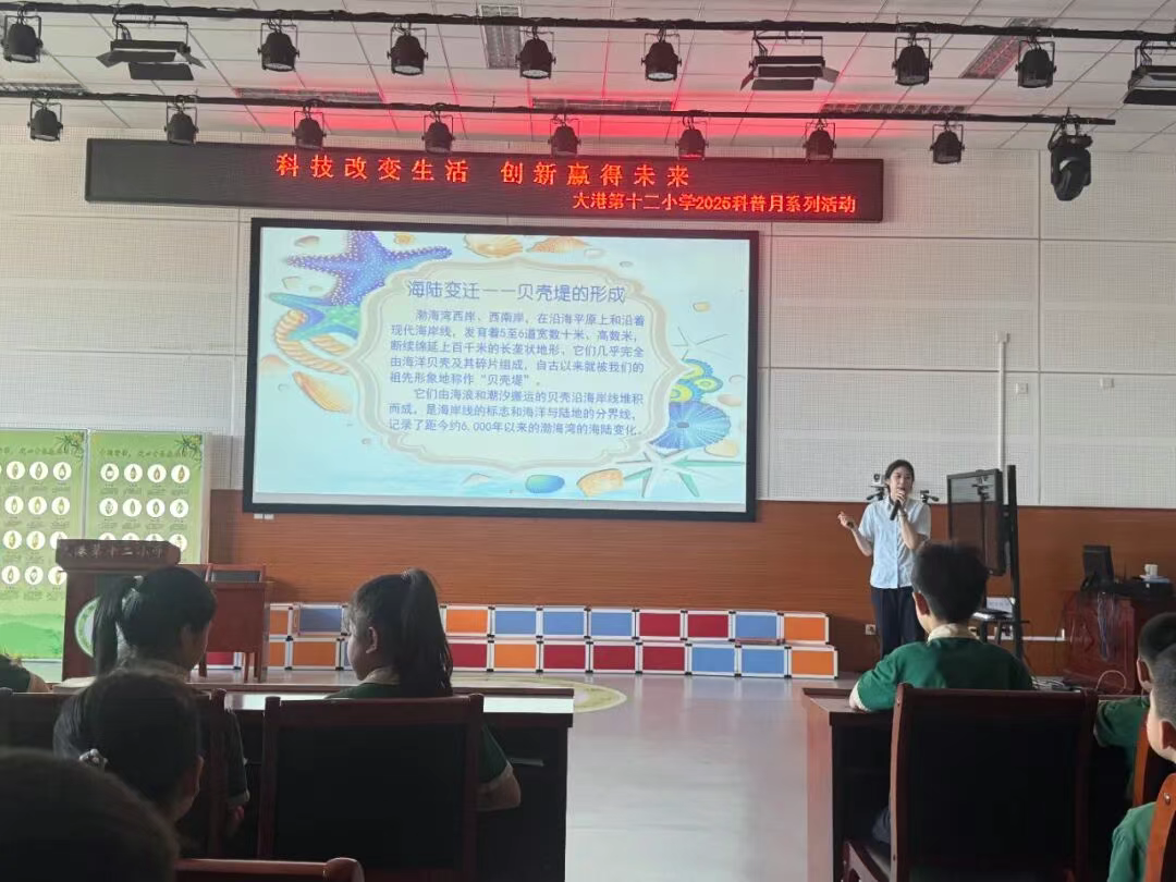 为充分发挥博物馆社会教育职能,让青少年沉浸式触摸古海岸遗迹的历史温度与魅力,提高科学素养,在2025年全国科普月期间,区文保旅游服务中心(古林古海岸遗迹博物馆)精心打造《观古海岸遗迹 看海陆变迁》主题课程入校园系列活动,深入大港第十中学、大港第十二小学,将蕴含海陆变迁奥秘的博物馆课堂送进教室,通过生动有趣的讲解,引导同学们解锁代表历史年轮——贝壳堤的千年密码,让海洋生态保护理念在心中悄然萌芽、稳步生长。