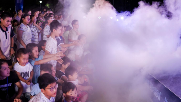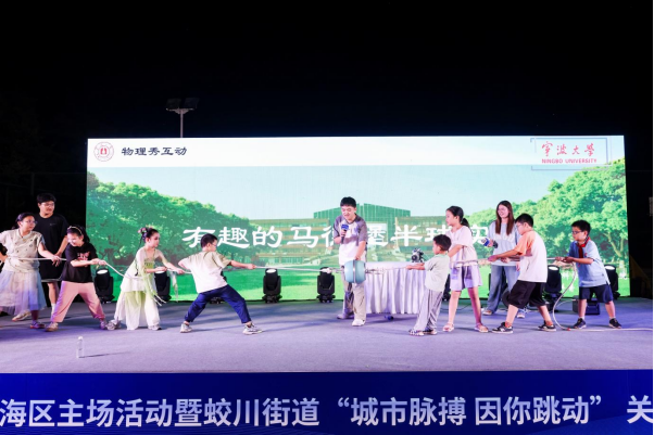 宇树科技机器狗表演成为亮点,其跑跳、舞蹈等动作展现智能科技魅力。科普集市同步开放,区学(协)会普及知识、中医专家坐诊,市民在体验中收获关怀。两轮科普问答涵盖健康、航天等主题,观众踊跃抢答;宁波博物院的罗老师向大家娓娓道来包玉刚的赤子之梦。宁波大学团队带来“空气炮”“马德堡半球实验”物理秀,宁波科学探索中心现场演示“做一朵云”,将科学原理转化为直观体验。《江南可采莲》《在希望的田野上》等舞蹈则以艺术形式串联传统与现代,为活动注入人文温度。